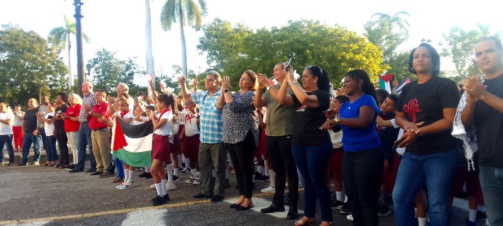 El pueblo de Cienfuegos, provincia del centro y sur,  como el de toda Cuba, reclamó justicia a favor de la causa Palestina, en la tribuna efectuada en áreas del Parque José Martí, donde condenaron las terribles acciones  que se cometen contra inocentes, símbolo vivo del crimen más grande de nuestra época.