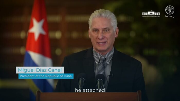 Según un texto de la Presidencia de la isla, Díaz-Canel aseguró que, en el contexto de los 80 años de la Organización de Naciones Unidas para la Alimentación y la Agricultura (FAO), reconoce su trabajo junto a Cuba para lograr mejor producción, nutrición y una vida mejor, “sin dejar a nadie atrás”.