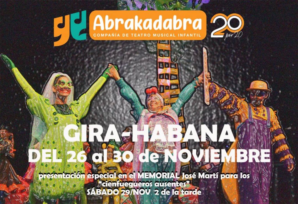 La Compañía de Teatro Musical Infantil Abrakadabra, de Cienfuegos, comenzó una Jornada de celebraciones por los 20 años de trabajo en escenarios de Cuba e internacionales, y que celebraremos el próximo 3 de diciembre, informó el cantautor Roberto Novo, su director general.