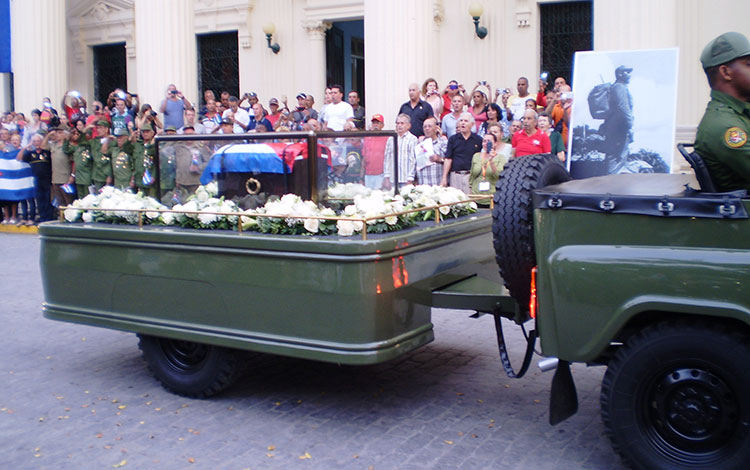 Lentamente entra la urna de cristal al centro de la isla. Abrazado por la bandera cubana, ya llega Fidel de cuerpo y alma.