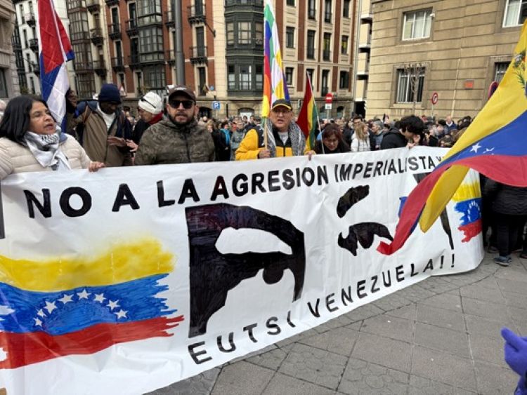 Así ocurre en Bilbao, país Vazco, que este jueves 15 de enero volverá a las calles bajo el lema “No a la agresión imperialista. Por la Soberanía de Venezuela” y convoca para las siete de la noche frente al Consulado de Venezuela, en la Plaza que lleva el nombre de la nación suramericana.