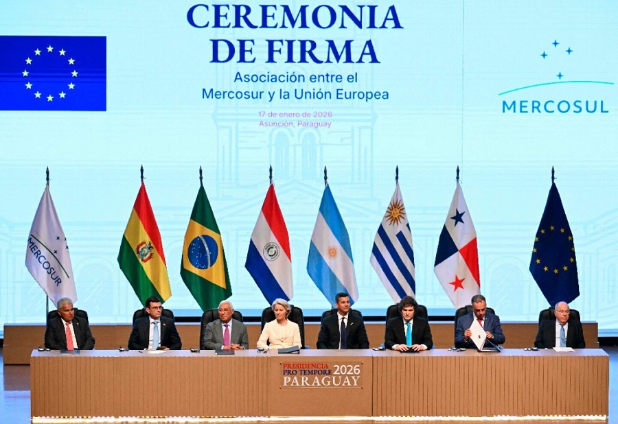La firma del acuerdo involucró a presidentes de varios países del Mercosur y fue testificada por líderes de la UE, aun cuando  se realizó  en un contexto global de tensiones comerciales, lo que llevó a la presidenta de la Comisión Europea, Ursula von der Leyen, a declarar ante más de 800 asistentes: “Elegimos el comercio justo sobre los aranceles; elegimos una asociación de largo plazo sobre el aislamiento”.