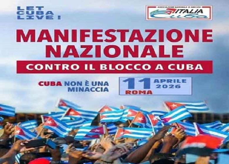 La manifestación de apoyo a Cuba convocada para el próximo sábado 11 de abril, iniciará a las 15:00 en el Coliseo romano y se extenderá por las avenidas San Gregorio, Aventino, y de la Piramide Cestia, hasta la Plaza Ostiense, en las inmediaciones de Porta San Paolo.