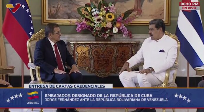 El presidente Nicolás Maduro recibió este martes en Caracas, las Cartas Credenciales del nuevo embajador de Cuba en Venezuela, Jorge Luis Mayo, para seguir reforzando los estrechos lazos de cooperación y hermandad sostenida entre los dos países.