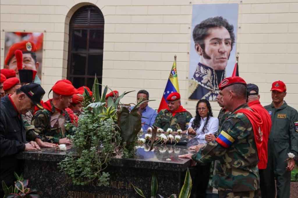 Acompañados por una de las hijas del líder bolivariano, Cabello y los hermanos de lucha acudieron al Cuartel de la Montaña, donde reposan los restos del Comandante Supremo, para en tributo colocar una rosa blanca sobre la tumba, a 34 años de aquella gesta histórica.