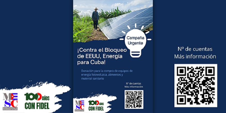 La fuente indicó igualmente que la convocatoria se enmarca en la campaña de emergencia lanzada por el MESC bajo el lema “Contra el Bloqueo de EEUU, Energía para Cuba”, activa hasta el 30 de abril.