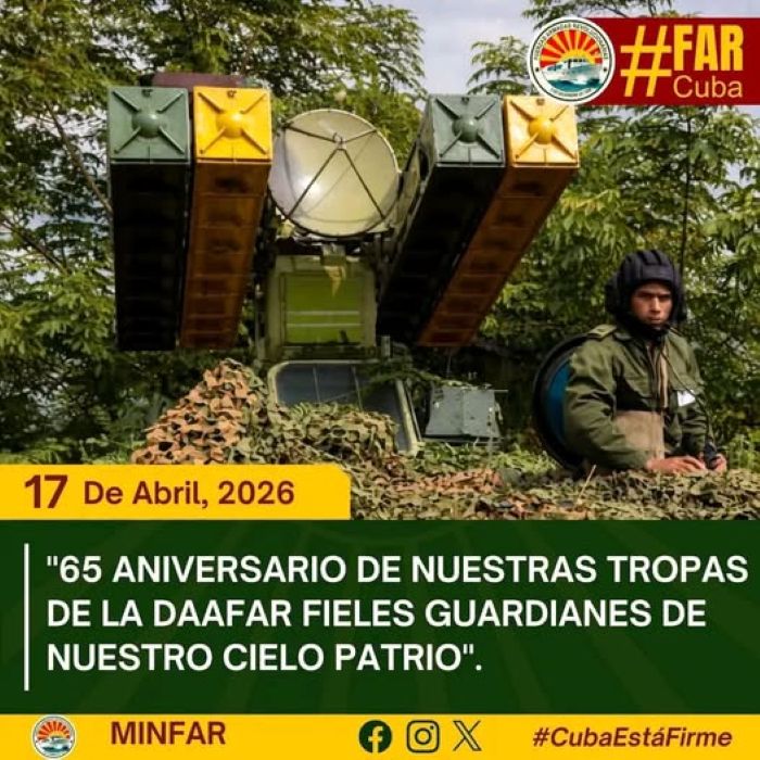 La Defensa Antiaérea y Fuerza Aérea Revolucionaria (DAAFAR) conmemoran este viernes su aniversario 65, en recordación de su papel histórico en la protección del espacio aéreo nacional desde los combates de Playa Girón.