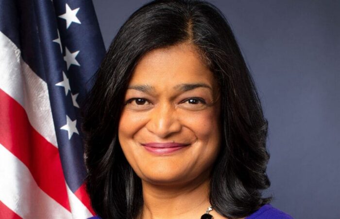 Jayapal, primera mujer indoamericana en servir en la Cámara de Representantes por el séptimo distrito de Washington, presidió el Caucus Progresista del Congreso entre 2021 y 2025, y forma parte de los comités Judicial y de Presupuesto.