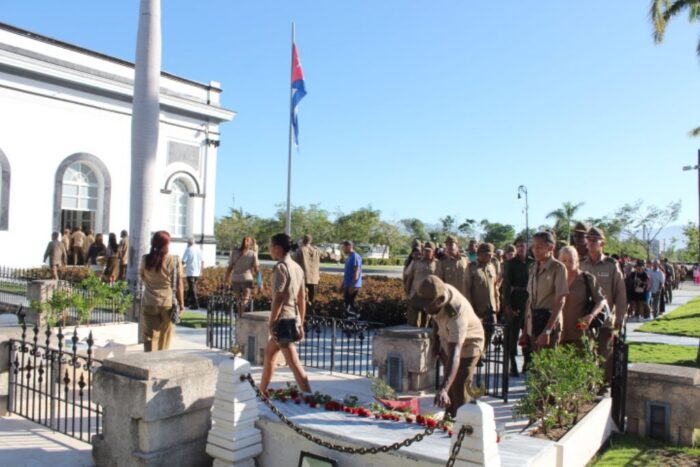 Los cadetes de la Escuela Interarmas Mayor General José Maceo Grajales «Orden Antonio Maceo», también depositaron un arreglo floral enviado por el presidente de la Asamblea Nacional del Poder Popular y del Consejo de Estado, Esteban Lazo Hernández y del pueblo de Cuba.