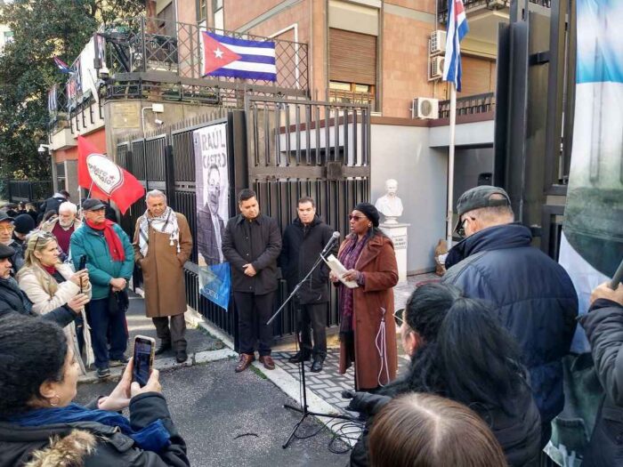 The massive demonstration that took place in front of the Cuban Embassy in Rome, ​​was attended by leaders and members of solidarity organizations such as the National Association of Italy-Cuba Friendship (ANAIC) and La Villetta per Cuba.