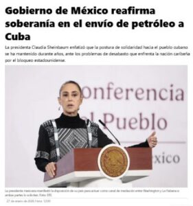 Mexican President Claudia Sheinbaum affirmed today that her country continues to provide humanitarian aid to Cuba, which has been besieged by Washington’s economic, commercial, and financial blockade for more than six decades.