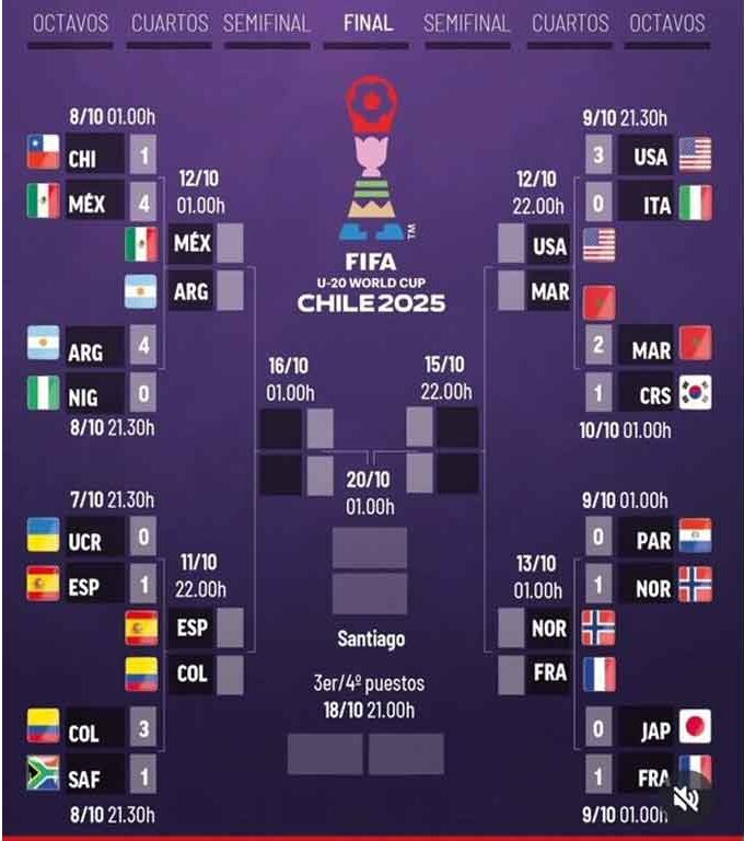 Havana, October 11 (RHC) – The U-20 World Cup, hosted by Chile, begins its quarterfinal stage today with matches between Spain and Colombia, and Argentina against Mexico.