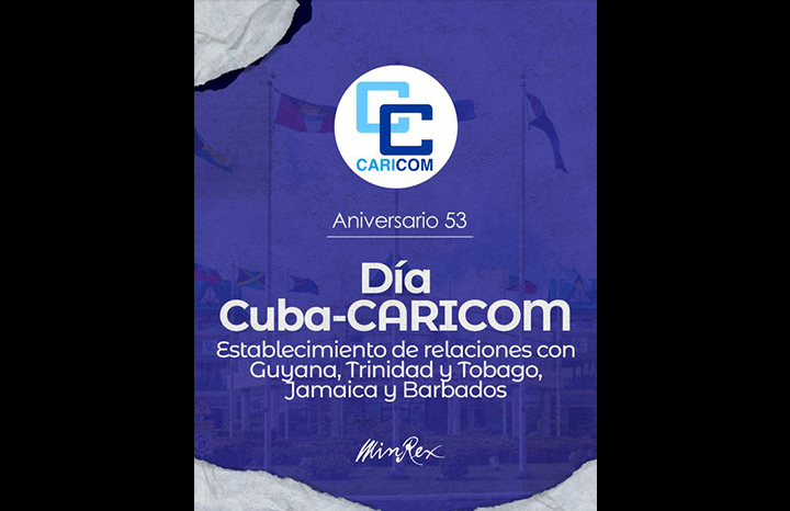 Cuba and the Caribbean Community (CARICOM) on Monday celebrate the 53rd anniversary of the establishment of diplomatic relations, a date that commemorates the decision by Barbados, Guyana, Jamaica, and Trinidad and Tobago to formalize ties with Cuba in 1972.