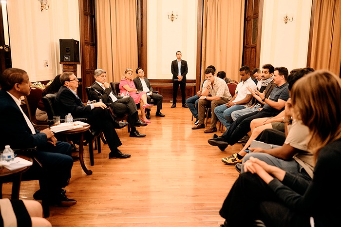 The meeting between Bruno Rodríguez and DSA members took place at the headquarters of the Permanent Mission of Cuba to the United Nations and was attended by Carlos Fernández de Cossío, Cuban Deputy Minister of Foreign Affairs.