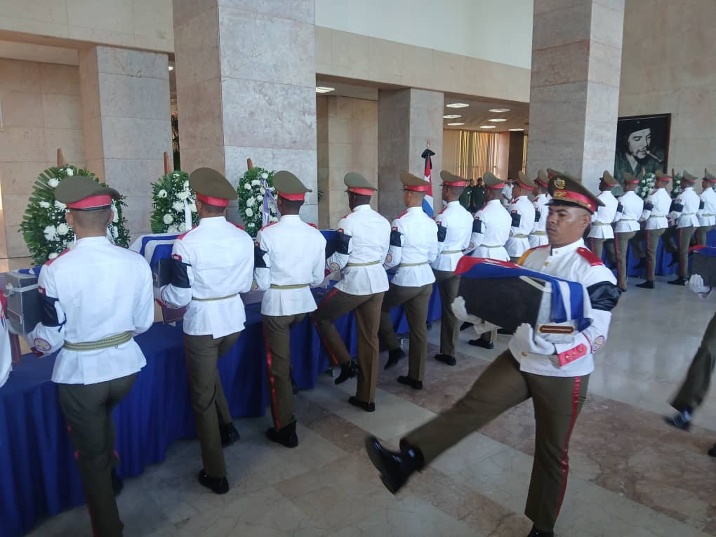 After the ceremony, the remains of the combatants were transported on gun carriages along Rancho Boyeros Avenue to the headquarters of the Ministry of the Revolutionary Armed Forces (FAR), located next to Revolution Square, where the people will be able to pay their respects.