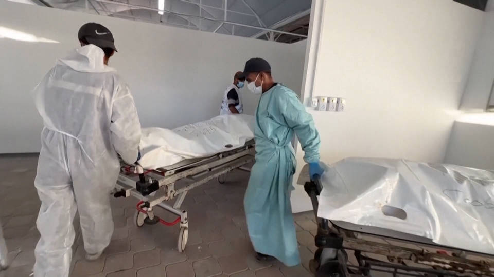 One woman whose husband is still missing told reporters: “The Red Cross has brought bodies, 90 bodies, and we have come to see if my husband is with them or not. The appearance of the martyrs, we do not know who they are, because they are disfigured and the Israelis have tortured them. We don’t know anything about them. Their appearance — we don’t know where my husband is. It is not known.”