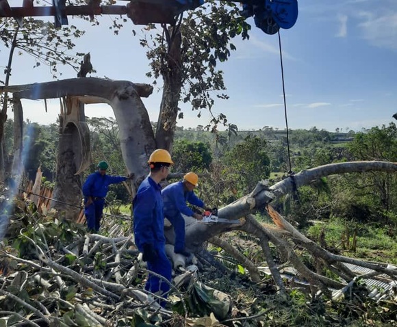 A priority for the electrical workers is the municipality of Santiago de Cuba, with 187,000 customers, where damage to distribution lines is extensive due to fallen trees, causing serious damage to poles, power lines, and other infrastructure.