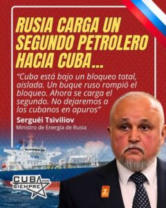Russia plans to send a second oil tanker to Cuba amid the energy crisis gripping the Caribbean nation, according to an announcement by the Eurasian country’s Energy Minister, Sergey Tsiviliov.