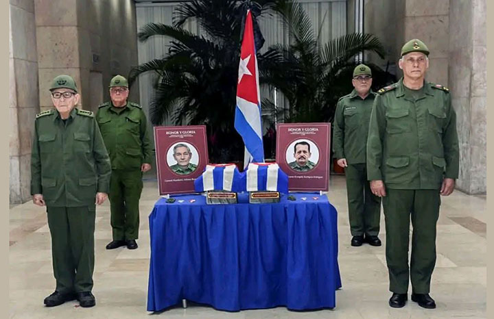 Le général Raúl Castro Ruz, figure historique de la Révolution cubaine, accompagné du président Miguel Díaz-Canel, a présidé jeudi la dernière cérémonie d’hommage aux 32 combattants cubains tombés au combat au Venezuela lors de l’agression militaire américaine. La cérémonie s’est déroulée au siège du ministère des Forces armées révolutionnaires (MINFAR), où Raúl Castro a rendu hommage à chaque soldat devant son urne funéraire, les qualifiant de « symboles du Mambí et de l’esprit rebelle du peuple cubain ».