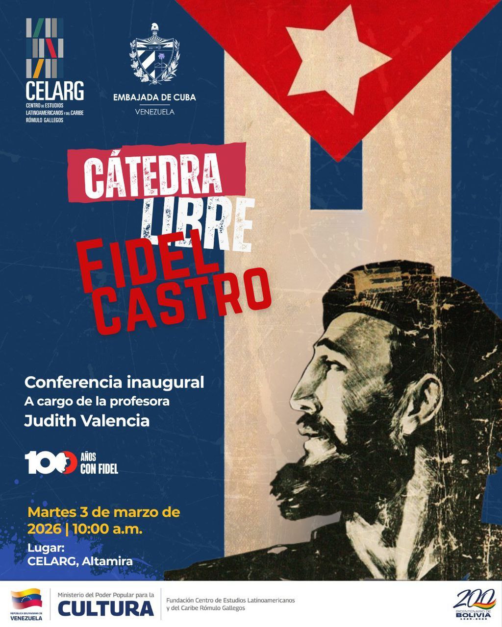 L’ambassadeur de Cuba a exprimé sa profonde gratitude à Celarg, au ministère de la Culture, aux représentants du gouvernement et à toutes les personnes présentes pour leur participation à cette réunion, qui « nous galvanise et nous émeut » puisqu’elle se tient durant le centenaire de la naissance du leader historique.