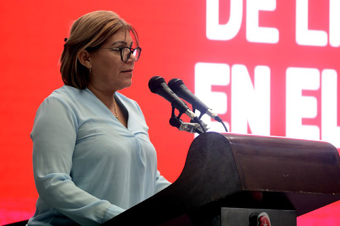 Yuniasky Crespo Baquero, jefa del Departamento Ideológico del Comité Central del PCC, en sus palabras de inauguración destacó que el amanecer de la jornada de este viernes inició cargada de verdades, compromisos y convocatorias en el acto de solidaridad con la República Bolivariana de Venezuela, frente a la estatua de Simón Bolívar.