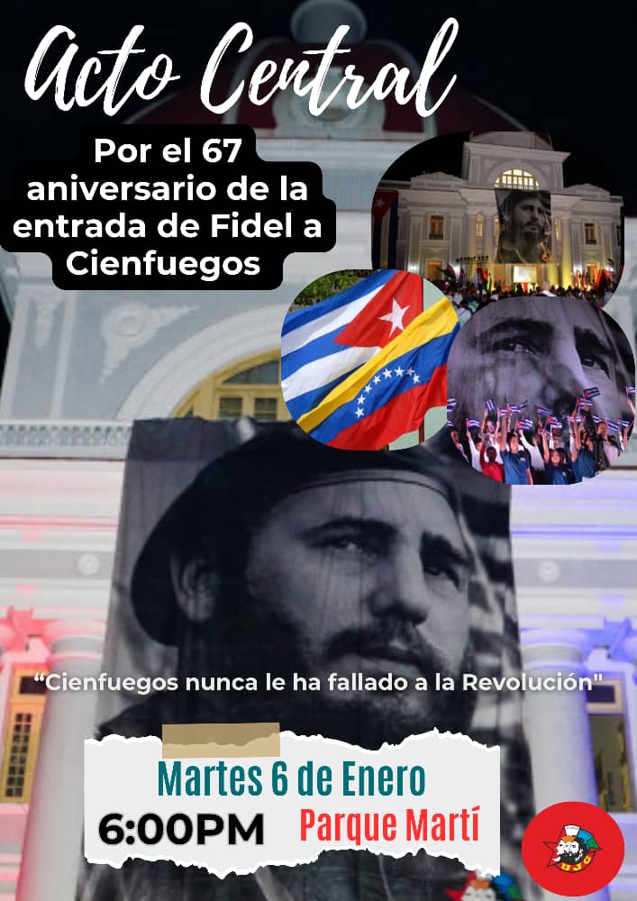 “Esta juventud cienfueguera levanta su voz para denunciar ante el mundo el cobarde secuestro y arresto del hermano Presidente Nicolás Maduro y de la combatiente Cilia Flores. Este acto de piratería política es un zarpazo del imperialismo, que no perdona la dignidad de los pueblos que deciden ser libres”.