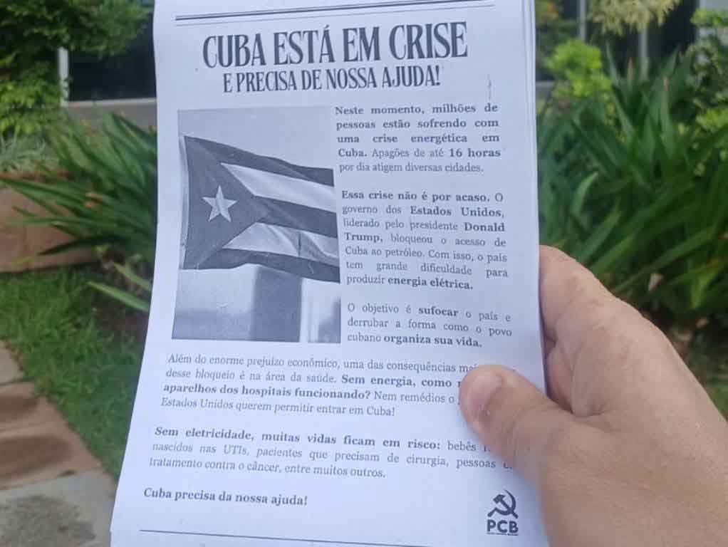 Según un texto distribuido en la iniciativa frente a una sede del Banco de Brasil en esta capital y al que tuvo acceso Prensa Latina, “Cuba está en crisis y precisa de nuestra ayuda”.