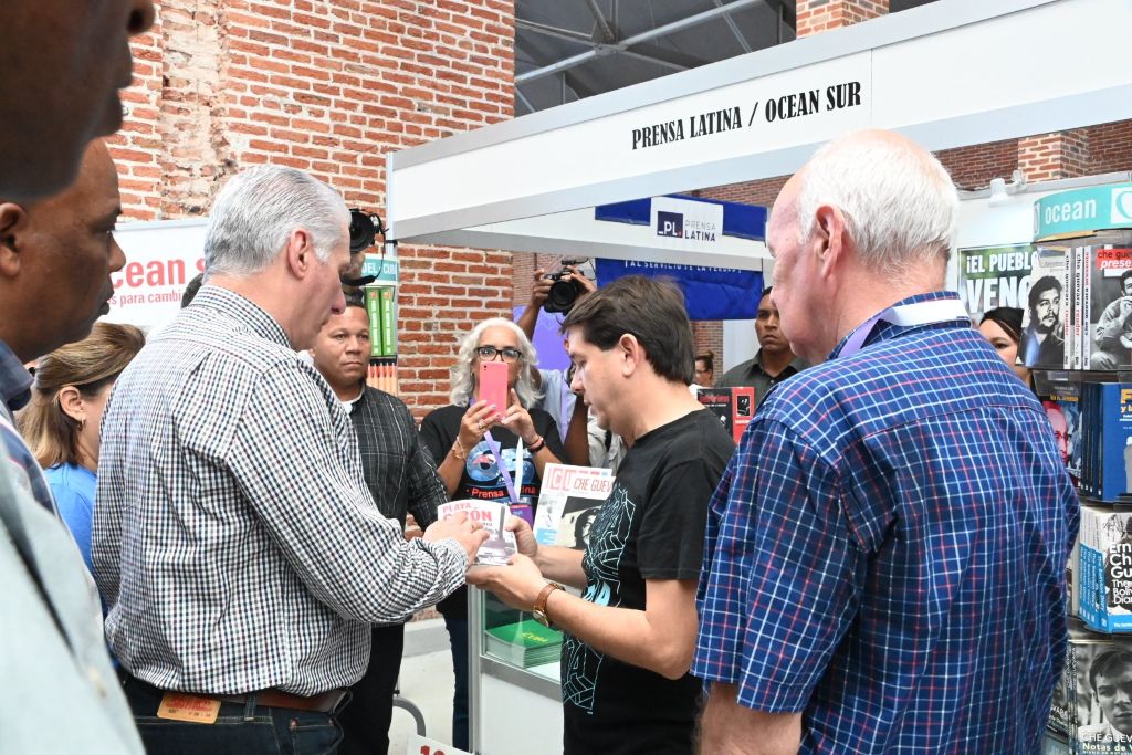 Díaz-Canel en el Coloquio Patria.El primer mandatario visitó el stand de ese órgano de prensa que expuso una amplia colección de colaboraciones con la editorial Ocean Sur.