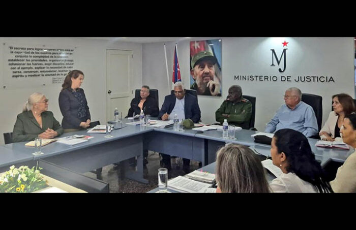 Acompañaron al presidente del Parlamento cubano, Oscar Manuel Silvera, titular del Minjus; José Luis Toledo Santander, presidente de la Comisión de Asuntos Constitucionales y Jurídicos de la ANPP; y Julio César García Rodríguez, jefe de la Oficina de Atención al Sistema del Poder Popular, Órganos del Estado y Sector Jurídico del Comité Central del Partido Comunista de Cuba.