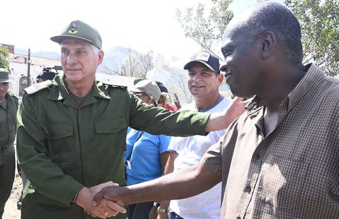 El icónico poblado de El Cobre que muestra hoy una imagen desoladora por los estragos de Melissa fue otro punto del recorrido de Díaz-Canel, quien llamó a la participación de todos en la recuperación.