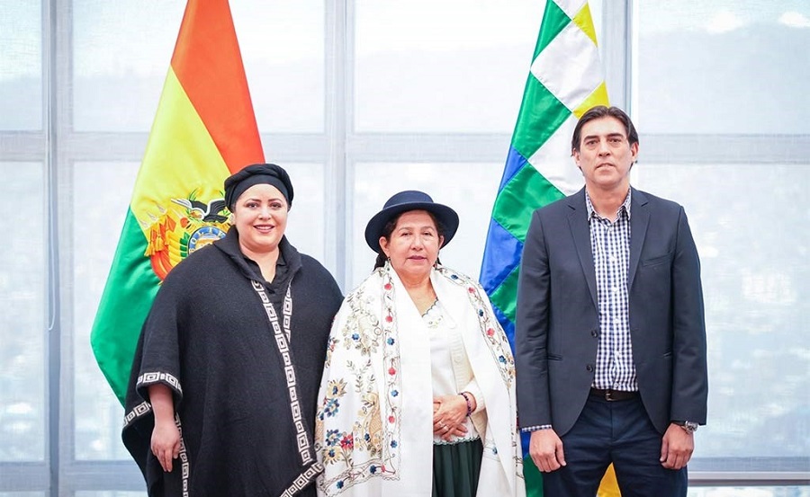 A ministra da presidência, Maria Nela Prada, e a chanceler Celinda Sosa, representaram o presidente Arce, e Maurício Zamora, responsável da coordenação, esteve presente em nome do chefe de Estado eleito.