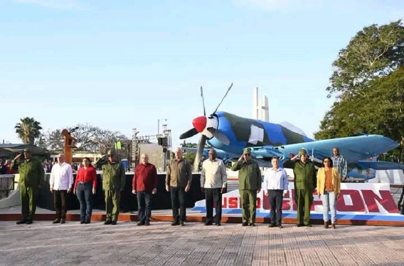 Transcurrió el acto en torno al Museo Memorial Playa Girón, institución fundada hace 50 años y donde ante el monumento con los nombres de los mártires permanecieron ofrendas florales del General de Ejército Raúl Castro Ruz, Díaz-Canel Bermúdez, y del pueblo en general.